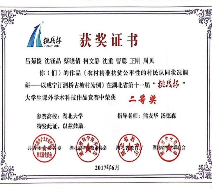 “挑战杯”大学生课外学术科技作品竞赛二等奖