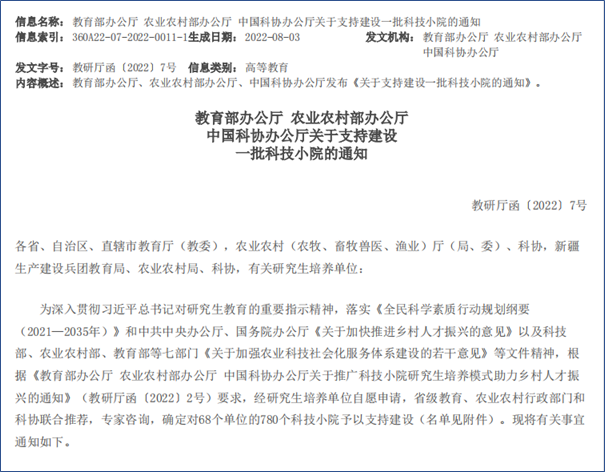 国家科技小院批文
